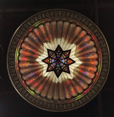 One of eight domes in the new Silver Auditorium with stained glass light fixtures