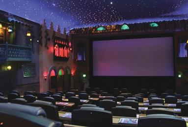 "We have the highest attendance, per seat, of any theater in the country," he said, adding that his theaters offer a different kind of movie-going experience. For starters, the theaters offer distinctive, themed auditoriums that each seat between 100 and 300 people. "Every auditorium has its own color scheme and its own decorative theme," he said. Moviegoers can purchase food and drink, including alcohol, either in the lobby or from the wait staff that serves tables placed in front of each row of auditorium seats. Auditorium seats at Hollywood Boulevard and Hollywood Palms are not standard fare, "We give them big, executive leather desk chairs," Bulthaup said, adding that the chairs recline, rock, allow for leg room and are outfitted with individual armrests. All of these amenities help pack the house, he said.